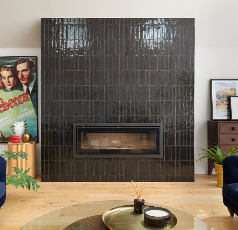 At the heart of The Black House, our client envisioned a bold architectural feature, a statement fireplace to complement the home’s contemporary design ethos. Tile Club was brought in to bring that vision to life through precision tiling and flawless detailing.