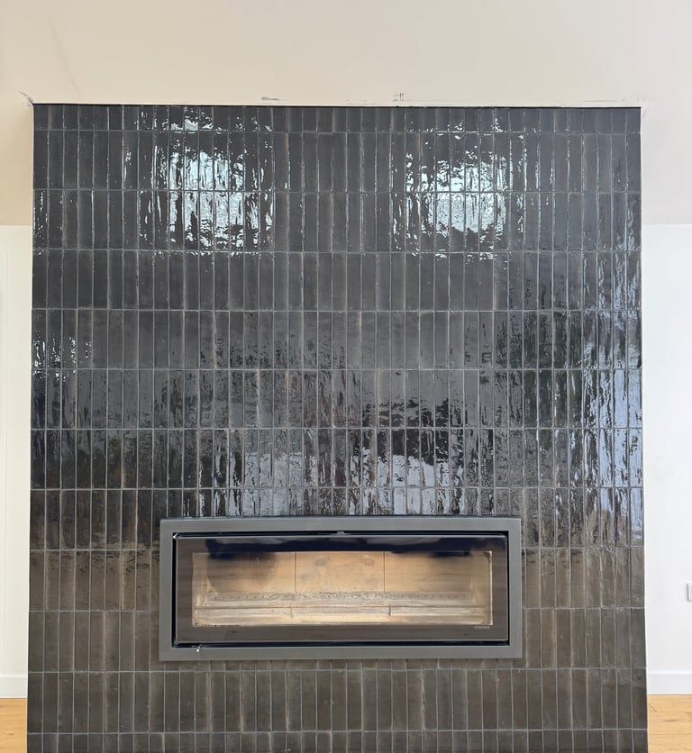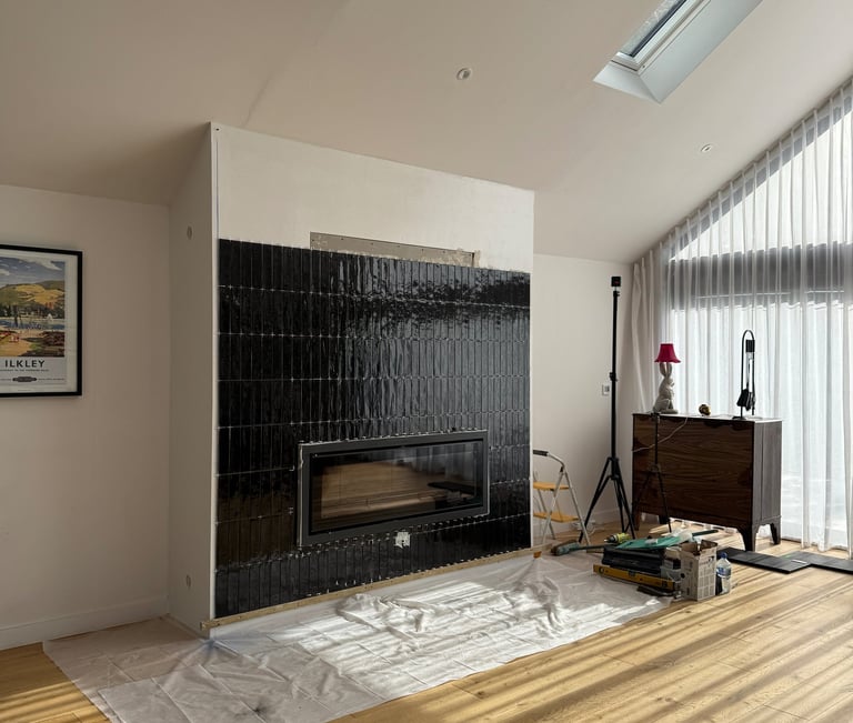 At the heart of The Black House, our client envisioned a bold architectural feature, a statement fireplace to complement the home’s contemporary design ethos. Tile Club was brought in to bring that vision to life through precision tiling and flawless detailing.